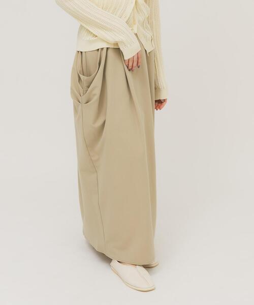 【ドレープデザインがモードな印象にしてくれるスカート】 ウエストからポケット、ヒップラインにかけてタックとドレープデザインを施したフォルム感のあるスカート。バックスリット仕様なので足捌きも良いです。ベーシックなトップスを合わせるだけでレディ且つモードな印象にしてくれます。 【2026 Spring/Summer】【26SS】 ※商品画像は、光の当たり具合やパソコンなどの閲覧環境により、実際の色味と異なって見える場合がございます。予めご了承ください。 ※商品の色味の目安は、商品単体の画像をご参照ください。 ▼お気に入り登録のおすすめ▼ お気に入り登録された商品は、マイページにて現在の価格情報や在庫状況の確認が可能です。 お買い物リストの管理にぜひご利用ください。 素材感 透け感 : なし 伸縮性 : あり 裏地 : あり 光沢 : なし ポケット : あり One
