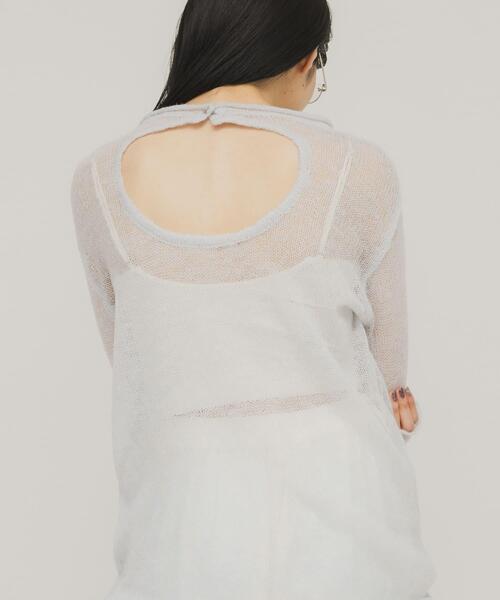 【バックオープンデザインで抜け感を叶えるシアーニット】 モヘアライクな糸を使用したシアーニットが登場。フロントはシンプルですが、バックオープンデザイン仕様になっており、大人ヘルシーが叶います。オーバー過ぎないシルエットや、少し長めに設定された袖がニュアンス感を演出してくれます。【2026 Spring/Summer】【26SS】※商品画像は、光の当たり具合やパソコンなどの閲覧環境により、実際の色味と異なって見える場合がございます。予めご了承ください。※商品の色味の目安は、商品単体の画像をご参照ください。▼お気に入り登録のおすすめ▼お気に入り登録された商品は、マイページにて現在の価格情報や在庫状況の確認が可能です。お買い物リストの管理にぜひご利用ください。