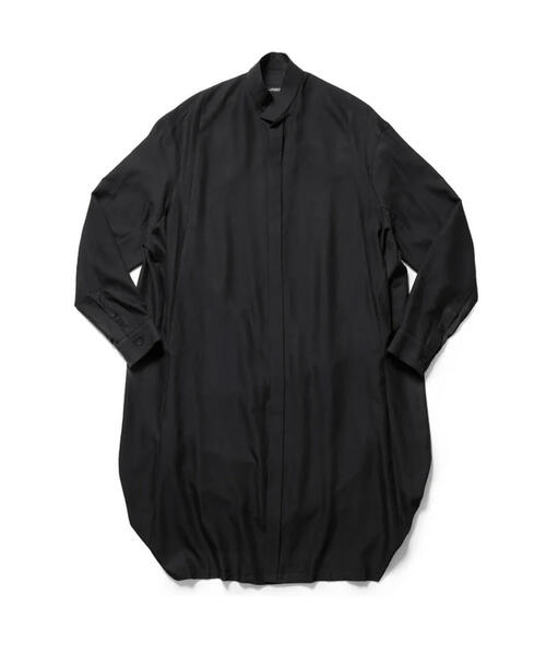 JULIUSレーヨンとシルクの混紡素材を採用したロングシャツ。オーバーサイズフィット、スタンドカラー仕立てで、サイドに配置したストライプでシルエットに変化をつけて愉しむことができる汎用性抜群の一着です。同シリーズのワイドパンツとセットアップとしての着用もお薦め。JULIUS・・・DESIGNER/堀川達郎(Tatsuro Horikawa)ユリウス(JULIUS)は日本のメンズブランド。日本はもちろん、海外でも取扱いが多く熱狂的なファンを抱える。堀川達郎(Tatsuro Horikawa)は1996年、サードストーン設立。この当時はグラフィックデザインを中心に活動する。97年には自身のファッションブランド「nuke」を立ち上げる。もともとグラフィックデザインを行っていたこともあり、服とグラフィック、映像などをさまざまな手法でブランドを表現。シーズンによりコンセプトが変わるが、ユリウスのファッションは、カラーはほぼ黒・白で構成されており、スタイルは、レイヤードやオーバーサイズだが細身のシルエット、加工素材などがよく使用されている。