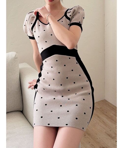 細見え効果抜群のミニワンピース ▽デザイン▽ ドット柄が目を惹くジャガードニットワンピース。 バイカラーでトリミングをしデザインのメリハリを付けたので挑戦しやすい柄アイテムです。 ウエストのVラインとスカート部分のサイドをバイカラーデザインにすることで 1枚で細見えしスタイルアップを叶えます。 サイドにウエストリボンをつけたことで後ろ姿まで可愛く、 ウエストのサイズも絞れるのが嬉しいポイント♪ 女性らしさ満点のアイテムです。 ▽カラー▽ 黒・青・ベージュの3色展開。 ▽スタイリング▽ 1枚でサラッと着用できてコーデが完成! ボディラインにフィットするタイトシルエットなので 薄手の羽織りとも相性良く、長く着ていただけます。 デイリー使いはもちろん、デートやテーマパークなど特別なシーンにもおすすめ♪