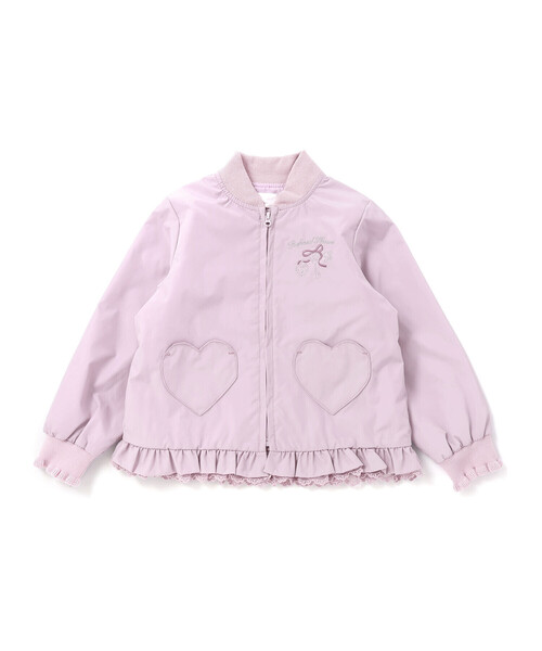 -26SS- 女の子らしさをぎゅっと詰め込んだ、キュートなタフタブルゾン。 ■デザイン 左胸元には、リボンとハート型のカギモチーフの刺しゅうをあしらい、物語を感じさせるような愛らしいアクセントに。 フロントポケットはハート型デザインで、さりげない可愛さが光ります。 裾にはフリルとレースを重ね、袖口には編立仕様をプラス。 甘さの中にも程よくメリハリのあるデザインに仕上げました。 裏地はハート柄の総柄デザインで、見えない部分までこだわった一枚。 やさしく上品なオフホワイトと、少し大人っぽさのあるパープルの2色展開。 ■素材/機能 軽やかでハリのある素材感が、ふんわりとしたシルエットをきれいに演出します。 前開きタイプなので、さっと羽織れて着脱も簡単です。 ※ポケットあり。 ※裏地あり。 ※柄の出方は生地の裁断により一点一点異なります。 26春夏アイテム 【2026年2月のテーマ / Blooming Garden】 楽しいことも、おいしい時間も、一緒に分け合うよろこび。 やさしい気持ちになれるハート柄や愛らしい動物たちのモチーフに、あたたかなカラーを散りばめて。 大切な人と想いを共有できる、やさしく幸せなコレクション。 【2026 SPRING SUMMER / Wishing you joy-喜びが訪れますように-】 すてきな一日を願う気持ちをお洋服に込めて。 誰かを想うやさしさと、あたたかなぬくもりを感じながら、毎日が小さな幸せで満たされますように。 優しくてあたたかなイメージのコレクション。 【SLAP SLIP(スラップ スリップ)】 ~子どもの欲しいをカタチに~ ヨーロッパのこどものように 子どもらしい今しか着れないナチュラルなかわいさを提案 どこか上品で清楚感漂うフレンチカジュアルは いつものコーディネートをさりげなく格上げ