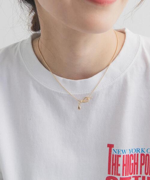 ノットデザインのパーツを施したショートネックレス。細めのチェーンと程よいボリューム感のトップの組み合わせは、首元をすっきりと美しく見せてくれます。Tシャツの首元やシャツの襟間から覗かせるスタイルにぴったりなアイテムです。【2026 Spring/Summer】【26SS】※この商品は、壊れやすくデリケートな商品です。お取り扱いには十分ご注意ください。※メッキ製品は変色する場合があります。香水等はメッキ変色の原因になる場合がありますので、同時使用の際はご注意ください。※その他お取り扱いに関しましては、商品に付属のアテンションタグをご覧ください。総重量 : 約5g※商品画像は、光の当たり具合やパソコンなどの閲覧環境により、実際の色味と異なって見える場合がございます。予めご了承ください。※商品の色味の目安は、商品単体の画像をご参照ください。▼お気に入り登録のおすすめ▼お気に入り登録された商品は、マイページにて現在の価格情報や在庫状況の確認が可能です。お買い物リストの管理にぜひご利用ください。One