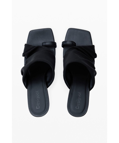 内側にカーブしたヒールのサンダル、無地、サイドオープン、つま先を固定するためのフロントストラップ付き。 【Desigualデシグアル】 バルセロナ発のファッションブランド「Desigual(デシグアル)」。スペイン語で“他とは違う”という意味が現すとおり、他のブランドにはない地中海をイメージさせるカラフルな色使いやエキゾチックなパターン、パッチワークやデニムなど着る人の個性を引き立てるアイテムを展開。デイリーにも、ドレスアップにも活躍する幅広いデザインが魅力。レディースだけではなく、メンズやシューズなど幅広いラインナップを展開。ブランド名にもなっているDesigual(他とは違う)は、自分自身が他の人と違うことがどれだけ大切で楽しいことなのかを改めて感じてもらいたいという私たちの願いが込められています。自由で楽しく、カラフルで前向き。本当の自分を呼び覚ます鮮やかなカラーやプリント、他とは一味違うスタイルはファッションを楽しくするものばかりです。
