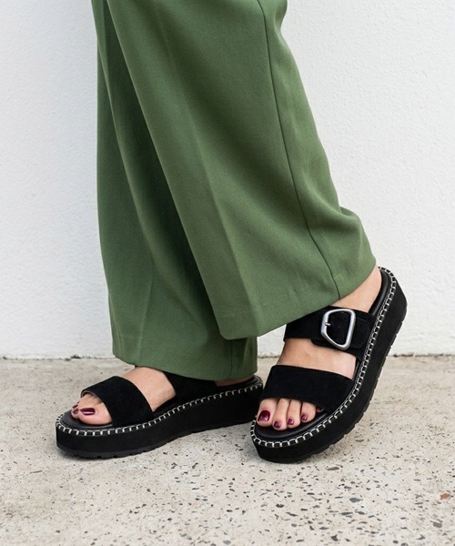 贅沢レザーと低反発クッションが包み込むコンフォートサンダル 最大のこだわりは足裏のアーチに吸い付くようにフィットする立体的なフットベッド。ナッパレザーと高密度メモリーフォームを組み合わせることで包み込まれるような柔らかさと、長時間歩いても疲れにくいクッション性を実現しました。またフットベッドのクラフト感のあるステッチがデザインの温かみと質感を高めています。 アッパーにはマットで上品な質感のスエードを。柔らかな風合いで足馴染みが良く上品な印象を与えます。内側のライニングにも本革を使用しているため、素足で履いても蒸れにくく吸い付くような優しい肌当たりに。 カラー展開は大人のエフォートレス・スタイルにピッタリな柔らかくヌーディーなトーンのベージュとブラックの2色。 ベージュは肌馴染みが良く足元を明るく見せ女性らしい抜け感を演出します。ナチュラルな素材感でまとめたコーディネートも◎!リネンワンピースや、エクリュカラーのワイドパンツやシアーシャツでまとめてきれいめカジュアルワントーンコーデも! もう1色は足元をキリッと引き締めるブラック。クールな印象でモードからカジュアルまで幅広く活躍。アンクル丈デニムと合わせたカジュアルスタイルや、フェミニンなスカートスタイルに併せて重めな足元にすることで少しクールに見せても◎。 スエード素材なので春先や秋口にはソックスを合わせて、長い間楽しめます! 【EMU Australia/エミュ オーストラリア】 1994年よりスタートしたオーストラリアのオーシャンロードを起源とするEMUは最上級の自然素材に革新をブレンドし、“ever natural”をテーマに365日完全なる快適さをお届けするフットウェアブランドです。世界で一番履き心地の良い靴を目指して、常に開発し続けています。 天然素材を使用しておりますので商品1点1点に個体差がございます。小さな傷やシワ又 毛足の長さ等は、それぞれ風合い、質感によるものですので不良品ではございません。