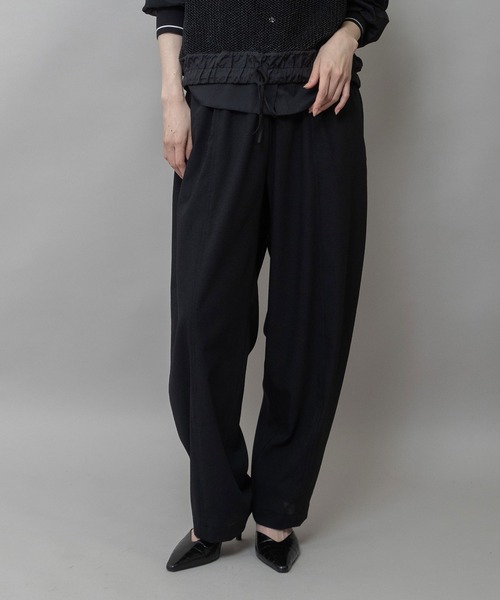 □ Munich 2026 spring & summer collection □◆カサッとドライなタッチで真夏まで快適に穿けるストレスフリーなバレルパンツ◆<MATERIAL>日本の気候に最適な機能満載のハイスペックストレッチサップです。糸の種類と組織構造により、生地に微細な穴を設けた通気構造で軽くて快適な着心地をキープ。肌離れする繊細な凹凸感と麻の風合いを再現した糸によるドライタッチでナチュラルな風合いが魅力です。通気性とUVカット、防シワ性、ストレッチ、撥水、ウォッシャブル性と備えた多機能素材です。デザインと機能をどちらも妥協しない次世代の快適素材です。<DESIGN>ボリューム感のあるバレルシルエットのパンツです。カーブをつけたバレルシルエットで裾に向かってテーパードがかっています。華奢なサンダルとボリューミーなランニングシューズどちらにもマッチして異なる雰囲気の出せるパンツです。表面感のある生地にのせることでカジュアルにもキレイ目にも着られるて日常使いに便利なアイテムです。同素材のブランド品番MN261B19とのセットアップスタイルもかっこよく決まっておすすめです。<COLOR>■ブラック:深みのあるブラックがモードな印象でスタイリング自在な定番カラー■グレー:ほどよい明るさのグレーが、知的でニュートラルな印象でオンオフ問わず活躍するカラー■モカ:まろやかなモカブラウンが、ナチュラルな印象で着こなしに馴染むニュアンスカラー※光のあたり具合いやパソコンなどのモニター環境によって実際の色味と異なって見える場合がございますので、予めご了承ください。※着用商品はサンプルです。サイズ等の仕様に若干の変更がある場合がございますので、予めご了承ください。※お取扱いについては、商品についております品質表示、アテンションタグにてご確認ください。洗濯:洗濯機洗い可.............................≪INFORMATION ≫............................▼商品のお気に入り登録▼『♡』マークを押してお気に入り登録して頂いた商品は、セール開催の通知やクーポン発行などのキャンペーンなど、お得な情報をいち早く受けとる事が出来ますので、ぜひご登録ください。