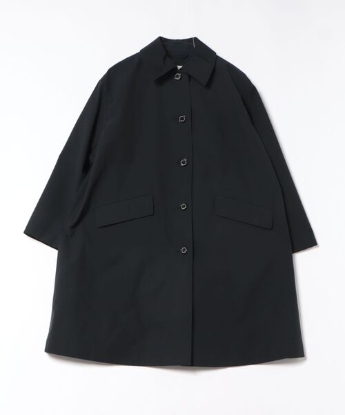 コンパクトな肩回りでAラインシルエットのミドル丈のコート、LINTON(リントン )に軽快なコットンポリエステル製のモデルが新登場。こちらのリントンは、エレガントさがありながらもモダンな印象を与える着る人を選ばない万能コートです。襟を立ててチンタブで両襟を留めると、さらにスタイリッシュな印象に。フラップポケット付き。春夏シーズンのアウターウェアに欠かせない2大定番生地のひとつ、RO素材はしっかりとしたハリと光沢が特長で立体的なシルエットが際立ちます。