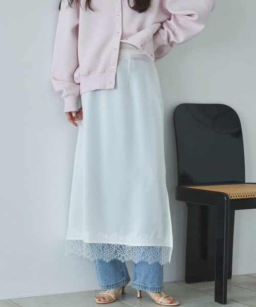 トレンド感のあるフェミニンなレーススカート 【point】 ・裾のレースがコーディネートのアクセントに ・すっきりながらもゆとりがあり、レイヤードスタイルにもオススメです ・今期トレンドのレースアイテムで履くだけでおしゃれに◎ ・シンプルなトップスと合わせてもスタイリングが華やかに 【fabric】 ・光沢のあるサテン生地 ・繊細なレース生地 ・ご自宅でのお手入れ可能 透け感:OFF WHITEのみややあり 裏地:なし(OFF WHITEのみペチコートあり) 伸縮性:なし 光沢感:あり 生地の厚さ:普通 【注意事項】 ・画像の商品はサンプルです。 実際の商品と仕様、加工が若干異なる場合があります。 ・サイズ表記はあくまで目安となります。 ・取り扱いについては、商品についている品質表示でご確認ください。 ・照明の関係により、実際より明るく見える場合がございます。またパソコンなどの環境により、製品と画像のカラーが若干異なる場合がございますので、予めご了承くださいませ。 ■お気に入り登録がオススメです!■ 《商品のお気に入り登録》 カラー・サイズ選択の横の「♡」をクリックで簡単に登録できます 完売カラーの再入荷や在庫が1点になったとき、セールになったときに通知をお届けします 《ブランドのお気に入り登録》 ページ上部のブランド名の「♡ お気に入りブランドに追加」をクリックで簡単に登録できます 新商品の情報やイベントなどお得な情報をいち早くお届けします 是非、ご登録お願いします♪