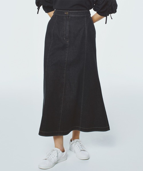 *アリコットストレッチカジュアルを、どこまでもエレガントに。美シルエットなデニムマーメイドスカート。 ラフな印象のデニムを、大人の女性にふさわしい気品あふれる一着へ。 驚くほどのストレッチ性と、計算されたカッティングが融合した「アリコットストレッチ」のマーメイドスカートが登場しました。 洗濯:洗濯機使用可能 ■ Design & Fabric 少しゆとりのある腰周りで窮屈さを感じさせず、一日中快適な着心地をキープします。 膝上まではすっきりと、裾に向かってドラマティックに広がるマーメイドラインは、360度どこから見てもドラマティックな美しさ。 デニム特有のハリ感を活かすことで、動くたびに生まれる贅沢な揺れ感が、カジュアルな素材感の中に「女らしさ」を際立たせます。 ■ Styling コンパクトなリブニットをインして、シルエットのコントラストを楽しむレディなスタイルはもちろん、 あえてオーバーサイズのシャツを合わせたリラクシーな着こなしも今季の気分。 足元はヒールで凛と見せても、スニーカーで外しても、どこか上品さが漂う、こだわりシルエットです。 穿き込むほどに馴染み、自分だけの一着へと育っていく。日常のスタイリングをブラッシュアップしてくれる、大人のためのデニムスカートです。 《お気に入り登録》はお得がいっぱい! 「商品」のお気に入り登録で、再入荷、ラスト1点、セールなどお得な通知を受け取ることができます。 「ブランド」のお気に入り登録で、新商品や再入荷などいち早くブランドの情報を受け取ることができます。 是非、この機会にご登録くださいませ。