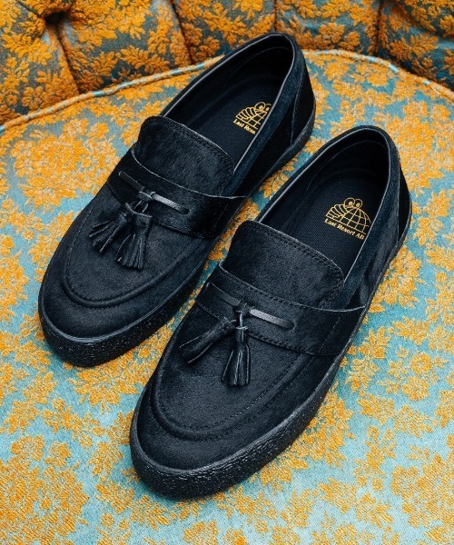 ブランド創設当初から望まれていたスリッポンスタイル。 ポニーヘアーで覆われたATELJEモデル。 VM002のラストと質感のあるフォクシングテープをベースに、ローファーとのハイブリッドデザイン。 インソール CLOUDY CUSH:フィット感とクッション性に優れたポリウレタンインジェクションインソール ATELJE スウェーデン語におけるアトリエであり、ファッションとの親和性を意識したスケートシューズを不定期にリリースするプロジェクト