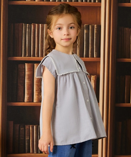 【素材】さらりとした肌触りが心地よく、通気性と吸湿性を兼ね備えたオックス生地を使用。快適な着用感でブラウスに最適な素材です。【カラー】高級感のある淡いグレーを基調に、セーラー襟には白のレースと繊細な飾りステッチを施し、上品で洗練された印象に仕上げました。 【仕様】前開きボタン仕様で、脱ぎ着しやすく着用時のストレスを軽減。大きなセーラー襟が特徴で存在感のある一着は、110~140サイズの展開です。 【ポケット】なし 【伸縮性】あり 【透け感】透けない 【クリーニング】洗濯機洗い可 【裏地】なし 【備考】140cmのみ前開きボタン6個 モニター・環境等により実際の商品と色味が多少異なって表示される場合がございます。 また、生産時期により色味が若干異なる場合がございます。予めご了承ください。