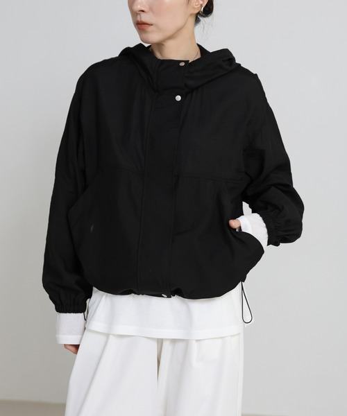 -point- & -styling- シャツ感覚で気軽に羽織れる軽量ブルゾン パンツにもスカートにもバランス良く着こなせるバランスで仕上げた1枚 ほのかに透け感のある滑らかな生地でカジュアルな印象になりすぎず着用が可能。 大きすぎず小さすぎない絶妙なサイズ感のフーディーは、 顔まわりをスッキリ見せる設計で子どもっぽくなりません。 裾のドロストをきゅっと絞って丸みを付ける着こなしがおすすめ◎ 春に映えるホワイト、シャープなブラックの2色展開でご用意しました ブルゾンパーカー軽アウター ---------------------------- 素材 レーヨン60%・ナイロン20%・テンセル20% ---------------------------- 伸縮性 なし 裏地 なし ---------------------------- ※モニター・環境等により実際の商品と多少色味が異なって表示される場合がございます。 予めご了承をお願いいたします。 ======================= ■袋梱包の為、染料による特有の匂いが抜けきれず、匂いがする場合がございますが不良品にはあたりません。 上記注意点での返品、交換はお断りします。ご了承の上お買い求めくださいませ。 ■本製品は生産過程におきまして色味、サイズ感等若干の誤差が出る場合がございます。予めご了承くださいませ。 ======================= 【お買いものをお楽しみいただく為に!】 ▼商品のお気に入り登録 完売カラーの再入荷通知や、ラスト1点の通知、セールの通知も受け取ることができます。 ▼ブランドのお気に入り登録 新商品や再入荷など、いち早くブランドのお得な情報を受け取ることができます!