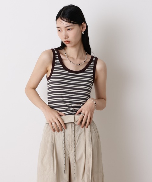 【2026 SS】 Stevelour(スティーブロア) 『一枚持っていると重宝する、大人のシンプルタンク』 今季も「STEVELOUR」シリーズが登場!肌触りがなめらかのニットライクカットソーを使用した、シンプルで着回し力の高いタンクトップ。ジャケットやシャツのインナーとしても活躍し1枚は持っておきたいアイテムです。 ■デザイン ・シンプルで長く愛せるミニマルデザイン ・レイヤードスタイルにも重宝 ・伸縮性があり動きやすくストレスフリーな着心地 ・メインではもちろんインナーとしても使いやすいアイテム◎ ■素材 ・肌触りの良いニットライクなカットソー素材 ・手洗いに対応したウォッシャブル素材 ■カラー展開 ・どんなスタイルにも合わせやすいシンプルなブラック ・細いボーダーがアクセントになったグレー ■コーディネート ・シリーズで揃えて統一感のあるコーディネートがおすすめ 669-6127315 「STEVELOUR」オーガンチェックタックパンツ(セットアップ可) 669-6127313 「STEVELOUR」コットンナイロンバルーンパンツ(セットアップ可) 669-6130314 「STEVELOUR」シアーメッシュダンボールタイトスカート(セットアップ可) ・カーディガンやニットの下に重ねてレイヤードスタイルにも◎ ■シリーズ ・669-6124317 「STEVELOUR」スクエアネックリュクストップス ■サイズ感 ・身体に沿うフィット感で、もたつきなくスマートなサイズ感 Stevelour(スティーブロア) モダンな光を放つ「steel スチール」と柔らかさと高級感を合わせ持つ素材「velour ベロア」を掛け合わせた造語 『sensual×modecasual』 センシュアル(知的な色気)とモードカジュアルの融合 ひとさじのgloss(艷)をスタイリングにプラス 媚びずに寄り添いeffortlessなマインドを持つ女性へ ■取扱方法 中性洗剤を使用して下さい。ネットを使用してください。洗濯後は形を整えて直ちに干してください。濡れたままの放置や、長時間の浸漬はしないで下さい。あて布を使用してください。お取扱い上の注意この商品は、摩擦(特に湿った状態での摩擦)や雨・汗などで他の衣料やバッグ等の周りのものに色移りしますので、充分ご注意下さい。淡色系の衣料と重ね合わせてご着用されると色移りします。雨・汗等で濡れた状態は非常に色が移りやすいですので充分ご注意下さい。保管時は他の衣類等への色移りを防ぐため収納カバー等を使用して下さい。 ※サンプルにて撮影、採寸を行う為、実際にお届けする商品と仕様やサイズが異なる場合がございます。予約時は生産の都合上、お届け予定時期が前後する場合もございますので、予めご了承下さい。 ※光の当たり具合や撮影環境により色味が異なる場合がございます。正しい色味はスタジオ画像の色味をご参照ください。 ※サイズスペックは、ブランドの採寸方法で表記している場合がございます。予めご了承ください。 ▼商品のお気に入り登録 お気に入りアイテムの再入荷や残り1点の通知を受け取ることができます。 ▼ブランドのお気に入り登録 新作アイテムの入荷や人気アイテムの再入荷、タイムセールやクーポンなど、 いち早くブランドのお得な情報を受け取ることができます。