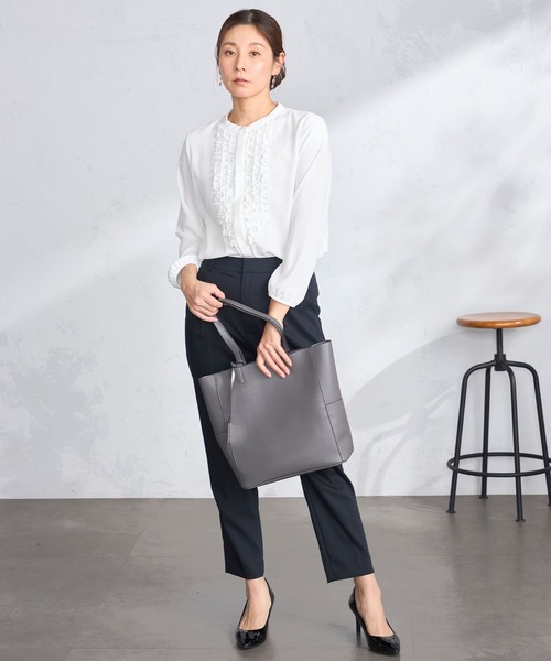ピンタックフリルがクラシカルで華やかな印象を演出 【機能/素材】 女性らしいジョーゼット調の生地を使用。 洗濯機で洗えてお手入れも簡単です。 【デザイン】 胸元にピンタックフリルをあしらったノーカラーブラウス。 背面にはギャザーを施し、バックスタイルも印象的なデザインに。 細身すぎず緩すぎないシルエットで、一枚でもインナーとしても着用可能です。 【お勧めスタイリング】 プリーツスカートやスラックス、ジャケットを合わせると上品フェミニンな通勤スタイルが完成。 カジュアルなボトムを合わせると日常にも着用いただけます。 【GALLORIA /ギャロ―リア】 ベーシックだけじゃ物足りない、ほどよくトレンドを取り入れ シーンレスにきちんと見える。 そんな願いを叶えてくれる、いまの空気感をまとった大人のデイリー服「GALLORIA」 買いやすいプライスで、バリエーション豊富に揃う ライフスタイルに寄り添うコレクションを展開します。 ◆Instagram:@galloria.sns 公式Instagramでは最新情報を定期的に更新中!フォローしてお得な情報をゲット! ■商品のお気に入り登録のおすすめ■ 完売カラーの再入荷通知、ラスト1点、お得なクーポンやお値下をお知らせします。 ■ブランドのお気に入り登録のおすすめ■ 新商品や再入荷のお知らせ等、ブランドのお得なクーポンやお値下をお知らせします。