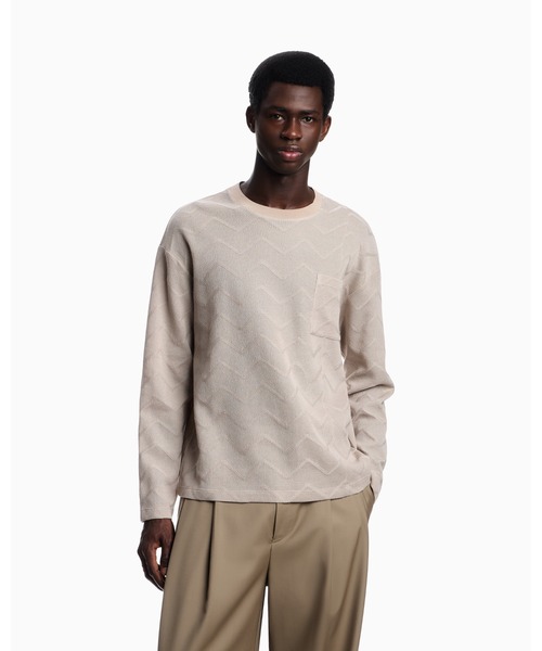 象徴的なシェブロンモチーフを描き出す、細かい透かし編みの模様が入ったピュアコットンのクルーネックセーター。上質な薄手のファブリックのベースがライニングのように機能し、透かし模様のシアー感を抑えています。細かい透かし編み/シェブロンモチーフ/クルーネック/パッチポケット/長袖【EMPORIO ARMANI ブランド紹介】1981年にイタリア、ミラノで誕生。デザイナーはジョルジオ・アルマーニ。イタリア語でエンポリオとは「あらゆるものが手に入る大きな市場」という意味。着心地と自由な発想を大切にしながら、都会的で洗練されたアイテムを提案しています。※こちらはジョルジオ アルマーニ ジャパン株式会社の公式オンラインストアです。アフターサービスにつきましては、当サイト内サポートセンターへご連絡下さい。