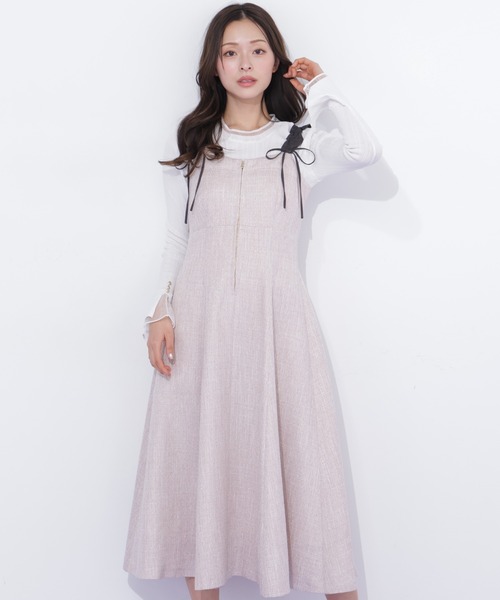 上品なツイード素材を使用したフェミニンなジャンバースカート 異素材の肩フリルとリボンがさりげないアクセントになり、胸下切り替えデザインで、スタイルアップ効果も期待できます。] シアーなニットやブラウスとのレイヤードで、ロングシーズン活躍。 可愛さと品の良さを兼ね備えた着回し力の高いアイテムです。 ※撮影時照明の関係により、色味が違って見える場合がございます。 またパソコン・スマートフォンなどの環境により、若干製品と画像のカラーが異なる場合もございます。予めご了承ください。 商品の色味は、商品単品画像をご参照下さい。 ※商品画像はサンプルのため、色味やサイズ等の仕様に変更がある場合がございますので、予めご了承ください。 ◆お買い物をよりお楽しみいただくために◆ ・「商品のお気に入り登録」で完売カラーの再入荷やラスト1点、セール通知を受け取ることができます。 ・「ブランドのお気に入り登録」で新商品の入荷情報など、いち早く受け取ることができます。