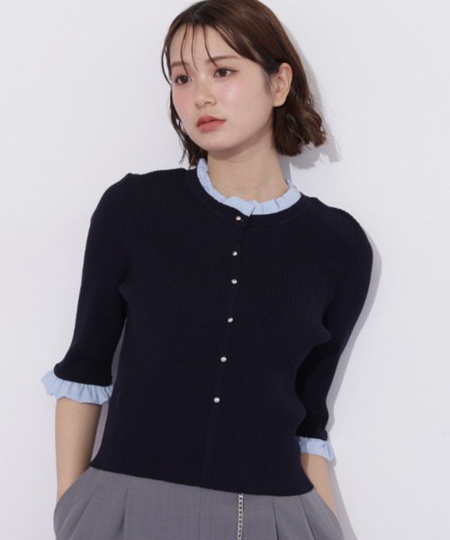 フリルシャツを重ね着したようなコンパクトリブニット 衿と袖口から出た控えめなフリルがポイント。 コンパクトサイズのため、フロントの釦の隙間から中が見えないように前立ては見せかけの仕様にした安心設計。 ミニ、ロング、パンツとなんにでも合わせやすい万能トップス。 小さめで控えめなツヤ感のある上品な金ボタンがポイント。 ※撮影時照明の関係により、色味が違って見える場合がございます。 またパソコン・スマートフォンなどの環境により、若干製品と画像のカラーが異なる場合もございます。予めご了承ください。 商品の色味は、商品単品画像をご参照下さい。 ※商品画像はサンプルのため、色味やサイズ等の仕様に変更がある場合がございますので、予めご了承ください。 ◆お買い物をよりお楽しみいただくために◆ ・「商品のお気に入り登録」で完売カラーの再入荷やラスト1点、セール通知を受け取ることができます。 ・「ブランドのお気に入り登録」で新商品の入荷情報など、いち早く受け取ることができます。