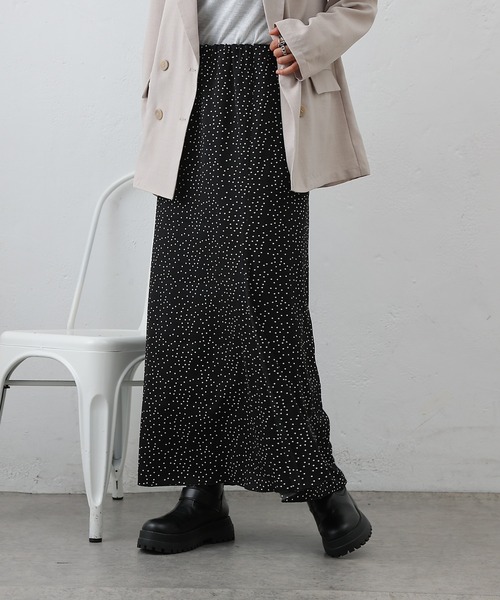 【甘くなりすぎずに合わせられるランダムドットスカート】ランダムにドットをちりばめたスカートです。甘くなりすぎない絶妙なドットのバランスで、大人っぽくも合わせやすいアイテムです。穿くとやや裾に向かって広がるシルエットになるので脚長効果も抜群のスカートです。ウエストは総ゴムのイージー仕様になっているので、トップスをインして穿いてもキレイなシルエットで穿いていただけます。また、小さめなドット柄デザインなので普段柄物を着ない方でも合わせやすいアイテムになっています。【商品ポイント】・ランダムドットがアクセントに・総ゴムのイージー仕様で穿き心地抜群・合わせやすいカラー展開----------------------------------------------------■商品特徴洗 濯 方 法 :洗濯機洗い可(弱)裏 地 :あり透 け 感 :なし伸 縮 性 :なし光 沢 感 :なし生地の厚さ:普通----------------------------------------------------■素材表地: ポリエステル100%裏地: ポリエステル100%---------------------------------------------------- ※着用、お取り扱いの際は、商品についている品質表示とアテンションタグを必ずご確認下さい。※商品タグに記載されている商品名がWEBでの表記名と異なる場合があります。※実際の商品と仕様、加工、サイズが若干異なる場合がございます。※照明の関係により、実際よりもやや明るく見える場合がございます。またパソコンなどの環境により、若干製品と画像のカラーが異なる場合もございます。予めご了承くださいませ。【お気に入り登録】してお得な情報をCHECK!!・「商品のお気に入り登録」で再入荷通知や、ラストの通知、セール通知も受け取ることができます。・「ブランドのお気に入り登録」で新商品や再入荷など、お得な情報を受け取ることができます。