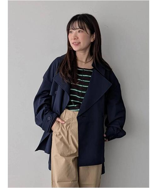 ウエストマークから広がるフレアラインが印象的なトレンチコート。きちんと感のあるディテールに、やわらかなシルエットを掛け合わせた一着です。ベルトを締めてワンピース風に着こなしたり、前を開けてデニムを穿いたスタイルにさらりと羽織るのもおすすめ。大人カジュアルからきれいめまで、コーデを品よく引き立ててくれます。【その他採寸】F 着丈:[前]72cm[後]79cm 全長:[ベルト]176cm 幅:[ベルト]7cm