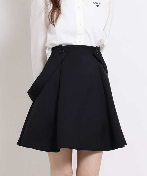 MILK 2026 Spring・クラシカルなムードが魅力の『École』シリーズのサスペンダー付きフレアスカート・張りのある生地を使用することで、立体的なボリュームをキープ。動くたびにふんわりと広がるフレアシルエットが魅力♪・ブラウスやニットと合わせたスクールライクな着こなしはもちろん、カジュアルなトップスと合わせたミックススタイルもおすすめです♡ Colors ♡A,ブルーグレーB,ブラック♡ Size ♡ウエスト 66㎝~ / ウエストライン下丈 45㎝♡ Material ♡ポリエステル100%