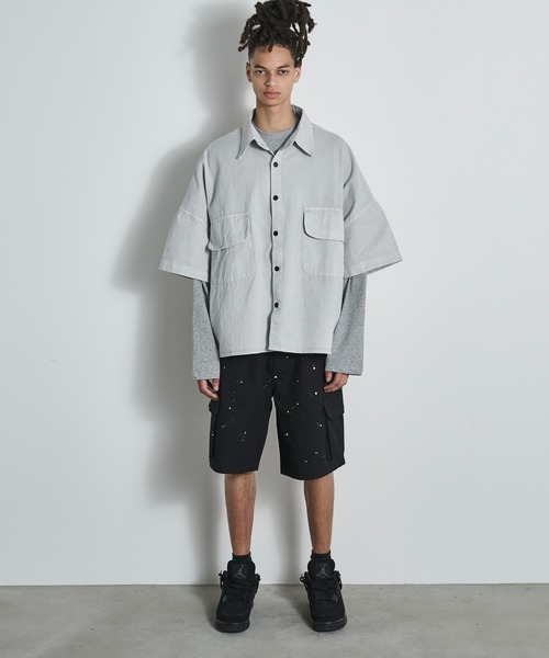 〜BLANK HOTEL 2026 S/S Collection〜 【Design】 しっかりとしたリップストップ生地のカーゴショーツ。 何と言っても、特徴はボディに施したペイント加工。 まるで前オーナーが日常の中で付着させたペンキのような、リアルな古着感が印象的な一枚。 わたりは程よくゆとりを残し、レングスも膝丈程度のトップスとバランスの取りやすいシルエット。 ウエストはイージー仕様で着脱がしやすい為、ついつい毎日手に取ってしまうような、そんなパンツです。 カラーはアイボリーとブラックの2カラー。 どちらもスタイリングの組みやすい色なので、お好きな方を是非。 【推奨サイズ】 S... 〜170cm M...171cm~175cm L...176cm~ ※好みや体型によって個人差があります 公式Instagramにて新着情報更新しております。 ↓ @blankhotel_official ーお買い物をお楽しみいただく為にー ▼お気に入り登録をオススメ致します。 『♡』をクリックして下さい。 ・《商品のお気に入り登録》で再入荷通知や、ラスト1点の通知、セールの際の通知も受け取ることができます。 ・《ブランドのお気に入り登録》で新作商品や再入荷など、お得な情報を受け取ることができます。 ※※※ATTENTION※※※ ※画像の商品はサンプルです。 実際の商品と色味、仕様、加工、サイズ、素材等が若干異なる場合がございます。 ※撮影場所やお使いのモニター環境により若干お色味が異なる場合がございます。 ※製品によっては染料の特性上、湿った状態や汗をかいた状態での長時間の放置、または摩擦により、他のものへ色移りする恐れがありますので、着用時にはご注意下さい。 ※風通しがよく、湿気の少ない日の当たらない場所で保管して下さい。 ※また製品加工上、お手元に届く際に匂いが生じる場合がありますが、 ご使用を続けていく事により匂いは軽減されます。