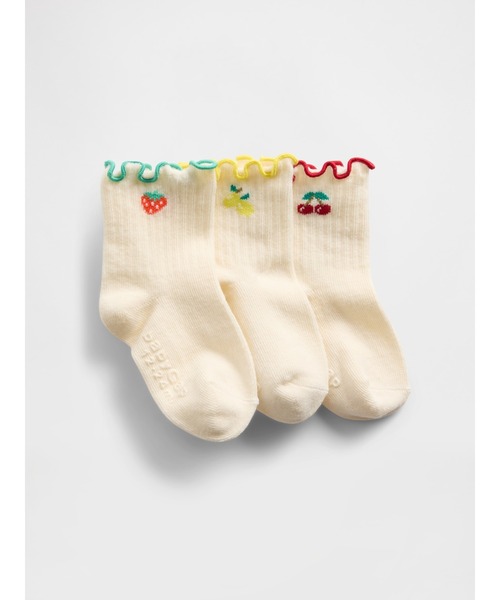 伸縮性のある優しく心地良い肌触りのクルーソックス レタスフリル フルーツ柄グラフィックにバリエーションあり つま先とかかと補強で耐久性アップ リサイクルポリエステルを10%使用しています。リサイクル素材を使うことで、バージン材の使用を減らし、資源の節約と廃棄物の削減につながります。この商品は、RISE (Reimagining Industry to Support Equality) を通じてジェンダー平等と女性のエンパワーメントを精力的に推進する工場で生産されています。 *商品タグに記載の価格とサイト上の販売価格が異なる事があります。 【Gap ギャップ】1969年にアメリカ・サンフランシスコで創業以来、世界的なカジュアルファッションブランドとして、常にモダンなアメリカンカジュアルを提案し続けています。