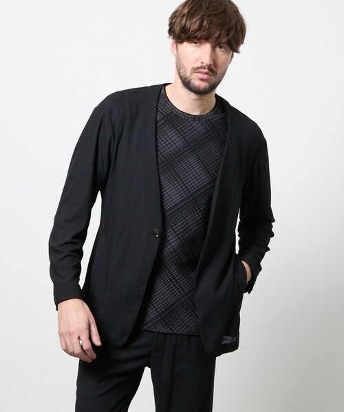 ■デザイン新作のノーカラージャケットです。肩回りをしっかり作る事でよりキレイ目な印象に仕上げました。一つ釦デザインのシンプルなデザインですので、サラッとカーディガンのように羽織って頂けます。冬にはミドルインナーとして、春には羽織として着用でき、夏のクーラー対策としてもおすすめしたい1着です。同素材でパンツ「メーカー品番:6165-5103」を展開しておりますので、セットアップでのスタイリングもおすすめです。■サイズゆったり目のサイズ設定ですが、ウエストにシェイプを入れる事でシャープな印象に仕上げています。■素材強撚のポリエステル糸を使用して編み立てたメッシュ調のヘリンボンジャージー素材。強撚糸の特徴のシャリっとした手触りと透け感のある夏らしい素材感が特徴です。ジャージー素材ですのでストレッチ性も高く、ストレスフリーな着心地を提供してくれます。洗濯してもシワになりづらいイージーケア性も魅力の素材です。伸縮性:あり生地の厚さ:薄手裏地:無し■注意点摩擦によりピリングが起こることがあります。※画像の商品はサンプルです。 実際の商品とは仕様・加工・サイズ・素材が若干異なる場合がございます。※掲載画像の商品の色味は、撮影場所や光の当たり具合などにより色味が異なって見える場合がございます。 商品の色味は、生地アップの画像をご参照ください。 また、お客様のお使いのPC・スマートフォン等のモニター環境などにより色味が異なって見える場合がございます。 予めご了承の上ご注文ください。※着用モデル身長182cm B89cm W75cm H90cm 着用サイズ48