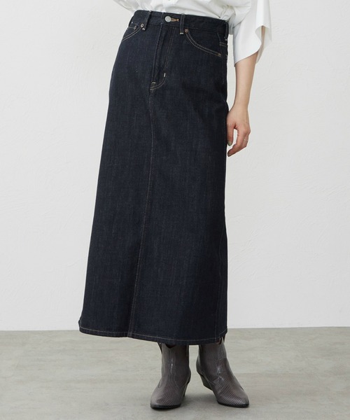 ヴィンテージライクな本格デニムスカート 【素材】 経糸と緯糸どちらにも短繊維のムラ糸を使用した、表情豊かで立体的な独自の加工感の出る綿100%デニムを使用。 13オンスのしっかりとした厚みと、程よいハリ感を兼ね備えたヴィンテージライクで本格的な質感を楽しめるのも魅力。 【デザイン】 裾に向かってまっすぐ落ちるIラインが特徴のロングスカート。 腰回りはタイト過ぎず、自然にフィット。 背面にはセンタースリットを施し、足さばきのしやすさと後ろ姿の抜け感を両立。 ウエストからヒップにかけてストンと落ちる形が印象的なアイテムです。 【コーディネート】 直線的なシルエットを映えさせるコンパクトなトップスをタックインしたコーディネートがおすすめ。 ゆったりとしたシャツやスウェットをラフに合わせれば、ボーイッシュな雰囲気を活かした抜け感のあるスタイルに。 シンプルで着回ししやすいデザインなので明るい色のスニーカーをあわせて足元に遊びを持たせるのが◎ ----------------------------------------------- ZOZOTOWNでのお買い物のポイント教えます! 【商品のお気に入り登録】 ♡クリックして保存が便利です ♡→♥ ①完売カラーの再入荷通知やラスト1点の通知 ②期間限定セールやプライスダウンの通知 ③悩んでいるときにも♡登録で一覧検索可能 【ブランドのお気に入り登録】 お気に入りショップ♡クリック登録 新商品や再入荷など、 ブランドの情報をいち早くお知らせします! ぜひご登録ください -----------------------------------------------