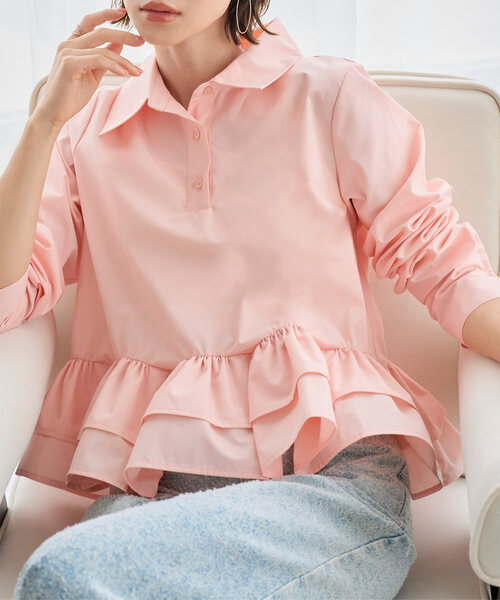 裾のふんわり広がるフリルが華やかさを添える長袖ブラウス。クラシカルなシャツ襟と組み合わせることで甘さを程よく引き締め、大人の女性らしいスタイルを演出します。 デイリーはもちろん、オフィスやきちんとしたシーンにも活躍。 一枚で着映えし、コーディネートの主役になるアイテムです。 【素材・サイズ感】 薄手でさらりとした綿混生地でお仕立てしました。 春や秋は1枚でブラウスとして、冬はニットのインナーとして着用し、裾からフリルを出すのもおすすめです◎ 肩や身幅に程よいゆとりを持たせながら、全体はすっきりとしたラインで上品に仕上げたデザイン。 裾へ向かってふんわり広がるフリルが、腰まわりやヒップをさりげなくカバーしてくれます。 パンツと合わせても甘さが引き立つシルエットで、女性らしい雰囲気をプラス。 可愛らしさと落ち着きを兼ね備えた、バランスの良いサイズ感です。 【STAFFコメント】 裾フリルデザインが大人可愛いペプラムブラウス。 きちんと感のある襟付きデザインで上品な印象に◎ ガーリーなデザインながらもポロシャツ風ネックが程よくカジュアルでデイリーに着用しやすいペプラムトップスです。 ニットやスウェットとレイヤードスタイルもおすすめ。 デニムやスラックスなどの定番ボトムはもちろん、タイトスカートとレディなスタイルにもマッチするフリルブラウスです。 ※【伸縮】なし/【淡色透け】ややあり/【濃色透け】なし/【裏地】なし 《KOBE LETTUCE ー神戸レタスー》 プチプラレディースファッションからコスメまで、トレンドアイテムを豊富に取り揃えております。 毎シーズン発売されるインフルエンサーとのコラボ商品はSNSでも話題に。