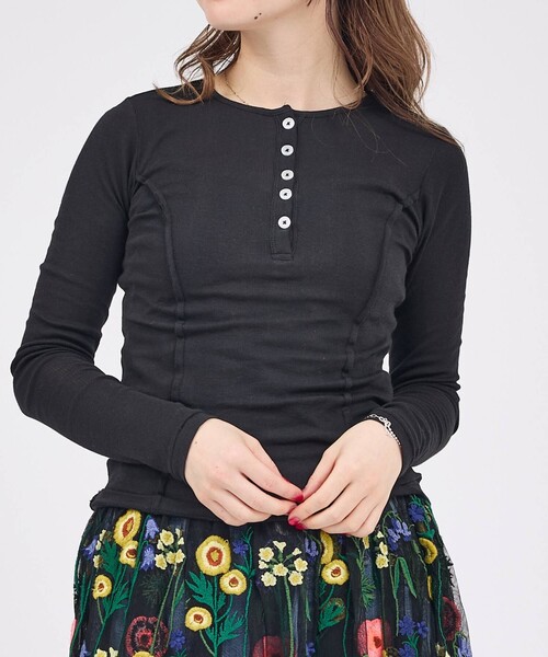 1枚で着こなせるロンT上品な透け感のあるライトパネルリブ素材を使用したロンT。女性らしいラインを演出してくれるタイトなシルエット。切り替えのラインがボディラインを綺麗に見せてくれます。ヘンリーネックで仕上げた首元はボタンをすべて閉めたり、開けて肌見せを楽しんだり女性らしい着こなしができます。一枚で着るのは勿論、2枚重ねてレイヤードするのもイマっぽい。デニムパンツを合わせるだけでお洒落なラフスタイルが完成する雰囲気ある一着です。フレアスカート、タイトスカートどちらの雰囲気にもハマる万能トップス薄手なので肌寒い時期から長く着ていただけます。◆メーカー品番◆RM261-2269※商品画像は、光の当たり具合やパソコンなどの閲覧環境により、実際の色味と異なって見える場合がございます。あらかじめご了承ください。※画像の商品はサンプルです。実際の商品と仕様、加工が若干異なる場合があります。【Robert P Miller | ロバート・ピー・ミラー】1907年創業のファクトリーニットブランド「モントンニッティングミルズ」によるサブブランド「ミラー」。パネルリブを使ったプロダクツをメインに展開しており、体に良く馴染むTやタンクは、アメカジのマストアイテムとして日本でも長く愛されています。使っているとリブがクタっとしてきて、いかにもアメカジっぽい風合いになるのがたまりません。意匠でもあるMillerブランド独自のオリジナルパネルリブ。【商品のお気に入り登録】完売カラーの再入荷通知や、ラスト1点の通知、プライスダウンしたセール通知も受け取ることができます。【ブランドのお気に入り登録】新作や再入荷等、いち早くブランドのお得な情報を受け取ることができます。