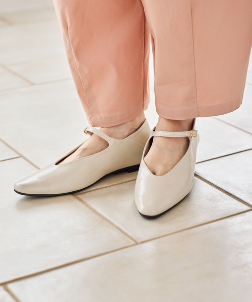 パンプスとしてもバブーシュとしても使える! 上品な印象の大人シューズ 【素材】 柔らかく上品な質感の合成皮革を使用しています。 足馴染みが良く、優しい履き心地が魅力。 【デザイン】 洗練された印象の細身のトゥデザインが特徴です。 シーンに合わせて楽しめる2WAY仕様。そのまま履いてパンプスとして、かかとを踏んでラフなバブーシュとして、2通りの履き方を楽しめます。 細めのワンストラップが足元を華奢に見せつつ、安定感のある履き心地をサポート。 カラーは、どんな装いにも気品を添えるBLACKとOFF WHITEの2色展開です。 ーーー 【スタイリング】 シュッとしたキレイ目なデザインなので、普段使いはもちろん、結婚式や入学式などのオケージョンシーンにもピッタリです。 スラックスやセットアップに合わせればフォーマルに、デニムやロングスカートにかかとを踏んで合わせれば、程よい抜け感のある大人カジュアルに。