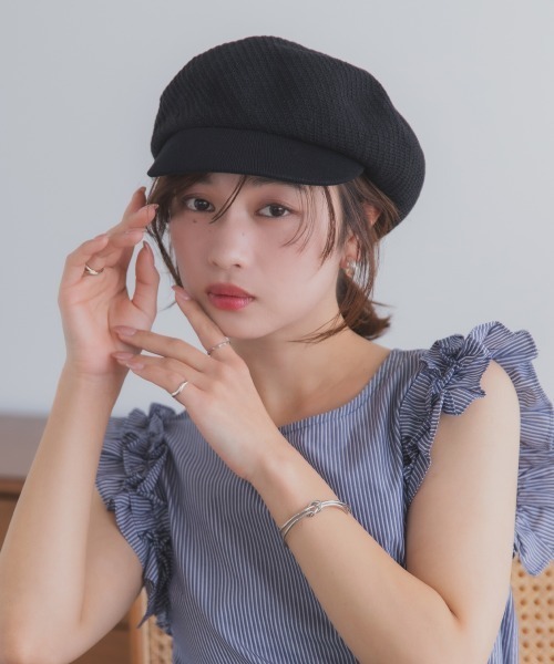 麦わらのような軽やかな編み地が印象的な、麦わらライクキャスケット。 ビスコース素材ならではのしなやかさと上品な光沢感が、大人の女性にも取り入れやすい仕上がりです。 きれいめコーデにも自然に馴染み、カジュアルにも使える万能デザイン。 浅めにかぶればトレンド感のあるスタイリングに、深めにかぶれば日よけ対策としても活躍します。 内側アジャスター付きでサイズ調整可能。 全世代の女性にフィットする、polcadotらしい上品で手に取りやすいキャスケットです。 ●スタッフ着用レビュー● ーースタッフN(女性 / 頭周り57.5cm) 調整せずにかぶると少しゆったりめのサイズ感でした。 アジャスターでフィットさせると安定感が増し、安心して着用できます。 浅めにかぶるとおしゃれな印象に、深めにかぶると日差し対策にもなり、 その日のコーデやシーンに合わせて楽しめるアイテムだと感じました。