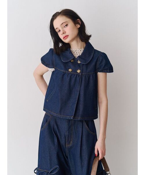 【ポイント】 丸みのあるパフスリーブと、大きめの襟デザインが目を引くデニムジャケット。 程よい厚みのデニム素材を使用し、カジュアルながらも立体感のあるシルエットに仕上げました。 コンパクトな丈感で、スタイリングに自然なメリハリをプラスします。 ヒッコリーストライプは爽やかで軽やかな印象、ワンウォッシュインディゴはデニムらしい深みのあるカラーで、幅広いスタイリングに取り入れやすい2色展開です。 【スタイリング】 同素材のワイドパンツ、スカパンと合わせたセットアップ風の着こなしがおすすめです。 スカートやレースアイテムを合わせることで、jouetieらしい甘辛ミックスのスタイリングも楽しめます。 前開き仕様のため羽織としても着用可能で、キャミソールやロゴTの上に軽く羽織ったり、シアートップスや長袖インナーを重ねて、袖口から見せるレイヤードもおすすめ。 1枚で主役になるデザイン性があり、シーズンムードを高めてくれるデニムジャケットです。 【セットアップ対象アイテム】 082622400201 リボンデニムスカパン 082622400301 ルーズポケットリボンデニム ※着用画像はフラッシュの加減で実際の製品と色味等が異なる場合がございますので、生地のズームアップ画像をご確認ください。 ※ご利用の端末画面の設定により実際の商品と色味が異なる場合がございます。 ※正しいサイズはアイテムサイズ表をご確認ください。 ※商品のお取り扱いについては、脇についている洗濯ネーム類をご確認下さい。【jouetie ZOZOTOWN お買い物ガイド】▼商品をお気に入り登録!♡をクリック!完売商品の再入荷やラスト1点の通知、セール開始時にお知らせ!▼"jouetie(ジュエティ)"をお気に入りブランドに登録!新商品や再入荷など、ブランド最新情報をいち早くお知らせ!