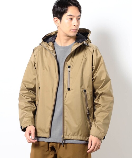 NANGAの名作素材を街でも使える完全別注シェルにNANGAの代名詞とも言える高機能素材「オーロラテックス」を使用した、Grand PARK完全別注のシェルブルゾン。NANGAの原点でもある滋賀工場で生産した日本製で、機能性・耐久性・デザイン性を高いレベルで融合した一着です。寝袋やダウンウェアで世界的に評価されてきたNANGAが、羽毛以外の分野で誇るシグネチャー素材「オーロラテックス」。本作は、春・秋を中心にロングシーズン着用できるシェルブルゾンとして、Grand PARKの視点で完全別注しています。デザイン表地には撥水加工を施したナイロン素材を使用し、その内側に多孔質ポリウレタン防水コーティングを施した<AURORA-TEX>素材を組み合わせることで、高い防水性と透湿性を両立。防水性を高めると蒸れやすくなるという課題を、高次元で解決しています。ファスナーには防水性に優れたYKK社製アクアガードファスナーを採用。内側にもファスナーポケットを2つ配置し、外側と合わせて計5つのファスナーポケットを備えた高い収納力も魅力です。袖には同系色のNANGAロゴ刺繍を施し、さりげないアクセントにしています。フード周りにはプラスチックワイヤーを内蔵し、立体的で美しいフォルムをキープ。フードには3か所、裾にもドローコードを配し、フィット感やシルエットをシーンに応じて調整可能です。風の侵入を防ぎながら、スタイリングの変化も楽しめます。インナーに厚手のスウェットやニットを着込める、程よくゆとりのあるシルエット。アウトドア由来の機能性を持ちながら、街着としてもバランス良く着用できる設計です。表地には引き裂きに強いリップストップ生地を採用し、アクティブなシーンにも対応。耐久性に優れ、長く愛用できる素材感です。耐水圧:20,000mm透湿性:6,000g/m²/24hrsという高レベルの防水透湿性能を備え、天候を問わず快適な着用感を実現しています。スタイリング・デニムやスラックスと合わせたタウンユース・アウトドアや旅行、フェスなどのアクティブシーン・インナー次第で春・秋・初冬まで対応可能。街でもフィールドでも活躍する、汎用性の高いシェルジャケットです。商品情報裏地:あり伸縮性:なし光沢感:あり生地の厚さ:普通透け感:なしスタッフ着用コメント本社 Hさん身長:178cm/体重:66kg/体型:普通普段サイズ:48(L)/着用サイズ:48(L)サイズ感:厚手のスウェットも着込める、ゆとりのあるサイズ感素材感:ハリがありつつ軽量。リップストップの表面感がアクセント着心地:軽くてゆったり。長いシーズン着用できそう