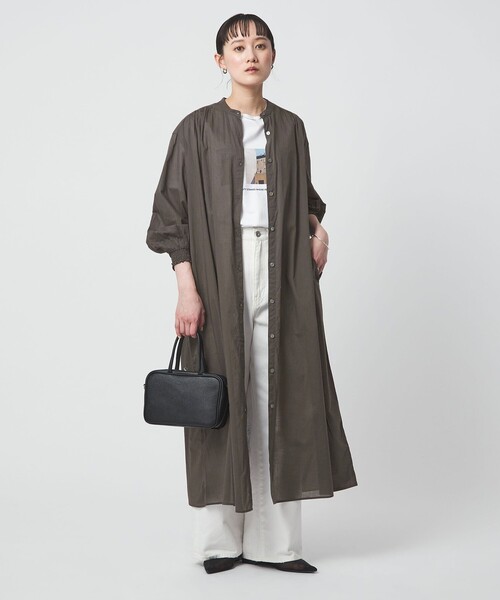 一枚で決まる、軽やかに揺れるシャツワンピース■デザイン羽織りとしてもワンピースとしても活躍する、軽やかなシャツワンピース。たっぷりとしたギャザーで泳ぐシルエットが美しいデザインです。首まわりはすっきりとしたバンドカラーで、上品な抜け感を演出。袖はまくりやすいよう、シャーリングゴムの仕様で仕上げました。■素材ナチュラルな風合いのコットン素材を使用。■コーディネートデニムやワイドパンツと合わせたレイヤードスタイルで、こなれ感のある着こなしに。スニーカーを合わせてカジュアルに、フラットシューズやヒールできれいめにと、足元で印象が変わります。・生地が異なりますが、対象品番:36261000028と同デザインです。#春服,#夏服,#秋服============================裏地:なし透け感:あり光沢感:なしケア方法:手洗い可============================【注意事項】※商品に「取り扱い上の注意書き」、「洗濯表示」がございます場合は、使用前に必ずご確認ください。※商品画像は、光の当たり具合やパソコンなどの閲覧環境により、実際の色味と異なって見える場合がございます。あらかじめご了承ください。※商品の色味の目安は、商品単体の画像をご参照ください。店舗へお問い合わせの際は、全国のgreen label relaxing各店舗まで下記の品名/品番をお申し付けください。品名:CFC ギャザー SLD SHOP 品番:36261000039