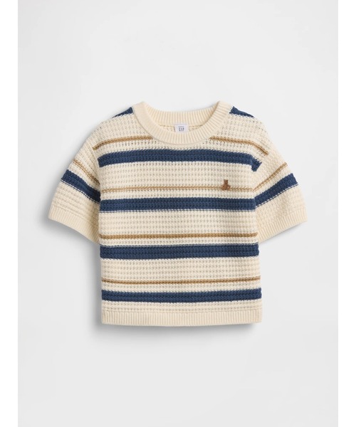 優しく心地良い肌触りのクロシェ編みリラックスフィットコットンセーター クルーネック 半袖、ドロップショルダー 胸にブラナンベア刺しゅうのディテール 裾リブ 全体にストライプ柄 この商品は、RISE (Reimagining Industry to Support Equality) を通じてジェンダー平等と女性のエンパワーメントを精力的に推進する工場で生産されています。 *商品タグに記載の価格とサイト上の販売価格が異なる事があります。 【Gap ギャップ】1969年にアメリカ・サンフランシスコで創業以来、世界的なカジュアルファッションブランドとして、常にモダンなアメリカンカジュアルを提案し続けています。