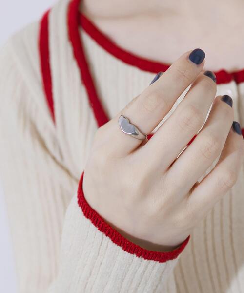 【手元に愛らしいスパイスを】 ●シグネットリングをキュートなハート型でモダンに ●甘さを抑えたメタルの質感とフラットな表面 ●肌に優しく錆びにくいサージカルステンレス素材 クラシカルなシグネットリングのフォルムをベースに、トップをハート型に仕上げたリングです。 ハートモチーフながらも、メタルの光沢感とすっきりとしたシルエットが子供っぽくならずに大人も楽しめるデザインです。 腐食に強く錆びにくいサージカルステンレスを採用した、金属アレルギーにも対応したアクセサリーです。 【2026 Spring/Summer】【26SS】 【サージカルステンレスとは・・】 ・通常のステンレス材よりも、より腐食に強く錆びにくい。 ・医療器具にも使用されており、金属アレルギーに対応した素材。 ・お風呂などの水に触れるシーンで付けっぱなしにしても、錆びたり変色したりしにくい。 ※アレルギーの原因はさまざまです。すべての方に起きないことをお約束するものではありませんので、予めご了承くださいませ。また、症状が出た場合は直ちに使用をお控えください。 ※アレルギー体質の方や体調が低下している方など、かぶれることがありますので十分にご注意ください。 ※サージカルステンレスは、腐食に強く錆びにくい特徴がございますが、製品状態を永久保証するものではございません。使用状況によって劣化は異なりますので、ご了承ください。 ※その他お取り扱いに関しましては、商品に付属のアテンションタグをご覧ください。 ※アクセサリーは壊れやすいものです。取り扱いに注意していただき大切にご使用いただけるようお願い申し上げます。 サイズ : 11.5=11号 総重量 : 約2.5g ※商品画像は、光の当たり具合やパソコンなどの閲覧環境により、実際の色味と異なって見える場合がございます。予めご了承ください。 ※商品の色味の目安は、商品単体の画像をご参照ください。 ▼お気に入り登録のおすすめ▼ お気に入り登録商品は、マイページにて現在の価格情報や在庫状況の確認が可能です。 お買い物リストの管理にぜひご利用下さい。 11.5