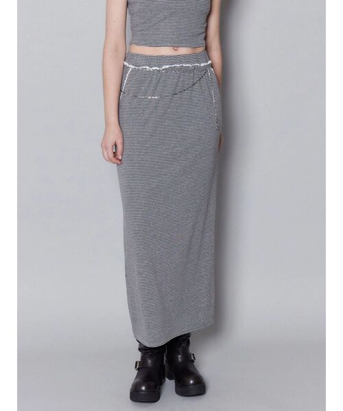 すっきりとしたストレートラインが印象的なマキシスカートセットアップ着用アイテム↓レースラインフーディトップス(042632730501)■デザイン無駄を削ぎ落としたミニマルなシルエットで、縦ラインを強調しスタイルアップ効果があります。ウエストラインとポケットには繊細なピコレースをあしらい、アクセントをプラス。甘くなりすぎないディテール使いで、エッジの効いたバランスに仕上げました。バックにはスリットを入れ、抜け感と歩きやすさを両立。■スタイリング同素材のレースラインフーディトップスと合わせたセットアップスタイルがイチオシ。チェリープリントTシャツのようなキャッチーなTシャツとの合わせも今季らしくおすすめです。※着用画像はフラッシュの加減で実際の製品と色味等が異なる場合がございますので、生地のズームアップ画像をご確認ください。※ご利用の端末画面の設定により実際の商品と色味が異なる場合がございます。【商品特徴】透け感:なし伸縮性:ややあり生地の厚さ:普通サイズ感:普通裏地:なしポケット:あり