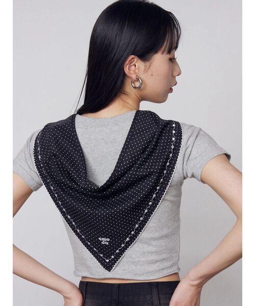 ハートの刺繍を施した三角スカーフ■デザイン腰巻き用としても、ヘッドアクセとしても着用いただけます。スカーフにはハートの刺繍を施しポイントにしています。端にはピコレースをつけキャッチーな仕上がりに。カラーは黒ドットとベージュチェックの展開です。どちらも春のスタイリングに合わせやすく、一気に今季らしい着こなしになります。※着用画像はフラッシュの加減で実際の製品と色味等が異なる場合がございますので、生地のズームアップ画像をご確認ください。※ご利用の端末画面の設定により実際の商品と色味が異なる場合がございます。
