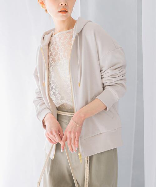 このアイテムはWEB限定商品です。 【カジュアルな印象をクラスアップしてくれるZIPパーカー】 滑らかで適度なハリのある生地を使用することで、型崩れしにくく上品な印象を与えてくれるパーカーが登場。 季節の変わり目の羽織りとして、また冬場にはインナーとしても長く活躍する一着です。顔周りを立体的に見せるフードの立ち上がりや、肩のラインを落としたシルエット洗練された雰囲気をプラスし、裾のリブが全体を程よく引き締め、バックスタイルもすっきりとした印象に。きれい目なワイドパンツと合わせれば、大人のリラックススタイルが完成します。 ジャケットを上から羽織って、フードを覗かせるレイヤードスタイルも知的な雰囲気に。 足元にはポインテッドトゥのパンプスを合わせて、女性らしさをプラスするのがおすすめです。 POINT ・品良く映えるゴールドの金具使い ・カジュアルさを抑えたクリーンな質感の素材 『UR TECH』 株式会社アーバンリサーチが独自開発して生まれた素材「UR TECH」シリーズ。 「抗菌防臭」「速乾」「防花粉加工」機能を併せ持った高機能な素材です。 【2026 Spring/Summer】【26SS】 ※商品画像は、光の当たり具合やパソコンなどの閲覧環境により、実際の色味と異なって見える場合がございます。予めご了承ください。 ※商品の色味の目安は、商品単体の画像をご参照ください。 ▼お気に入り登録のおすすめ▼ お気に入り登録商品は、マイページにて現在の価格情報や在庫状況の確認が可能です。 お買い物リストの管理に是非ご利用下さい。 素材感 透け感 : なし 伸縮性 : あり 裏地 : なし 光沢 : なし ポケット : あり L/GREIGE:165cm(Free) / 166cm(Free) / 165cm(Free) GRAY:168cm(Free) / 165cm(Free) Free