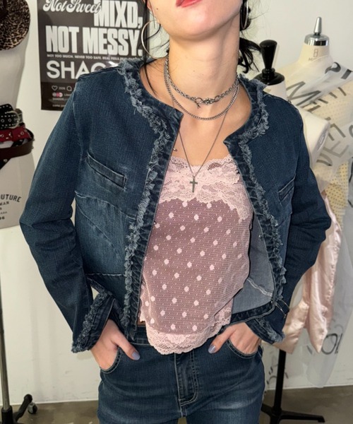 【2026 Spring Summer Collection】 ◆セットアップ着用可能♡ フリンジデニムジャケット ▷POINT デニム素材をきれいめにアップデートした、 フリンジディテールがポイントのノーカラージャケット。 フロントや裾に施されたフリンジが、 シンプルながらも一枚で存在感ある仕上がりに。 バックにスタイルにはベルトデザインをプラス。ウエストを絞って、シルエットをアレンジすることも可能です◎ ▷STYRING Tシャツの上にさらっと羽織るだけで、 こなれた雰囲気が出ます♡ 同素材のデニムパンツ(品番:SGIZI261015)と 合わせたセットアップ着用もおすすめです。 様々なテイストにマッチする、 春先に重宝する軽アウターです。 ・・・・・・・・・・・・・・・・・・・・・・ 透け感:なし 裏地:なし 伸縮性:なし 光沢感:なし 生地の厚さ:普通 ・・・・・・・・・・・・・・・・・・・・・・ ▼商品のお気に入り登録 お気に入りアイテムの値下げ・再入荷・在庫1点などの通知を受け取ることができます。 ▼ブランドのお気に入り 登録新商品や再入荷、セール、クーポン配布などお得な情報を受け取ることができます。 ※画像の商品はサンプルです。 実際の商品と仕様・加工・サイズが若干異なる場合がございます。 予めご了承くださいませ。 ・洗濯:手洗い可