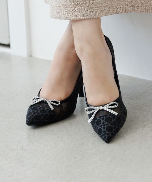 透明感のあるチュールに、繊細なグリッターラインが足元にエレガントな輝きを添えるパンプス。 すっきりとしたビジューリボンモチーフが大人の女性にぴったりの上品な甘さを演出します。 グレーはすっきりとした洗練感を、ゴールドは肌に馴染む柔らかさを演出し、ブラックは落ち着きとシルエットの美しさが引き立つカラーです。 シアーの軽やかさで季節を問わず取り入れやすく、通勤からオケージョンシーン、休日のおでかけまで幅広いシーンに活躍します。 ※画像の商品はサンプルです。実際の商品と色味、仕様、加工、サイズ、素材等が若干異なる場合がございます。 中敷きクッション ●ヒール高:8cm ●素材:生地 ●原産国:中国 ●幅:E ●サイズ展開:22cm~25.5cm ≪デリケート 生地≫シューキーパーなどで履きしわを伸ばし、しわの間の汚れを取りやすくします。柔らかい布で軽くたたくようにホコリや泥を落とします。防水スプレーをかけて乾かしてください(30秒程度)。水をはじき、汚れ防止にもなります。かけすぎや、至近距離からのスプレーはシミになりやすいのでご注意ください。 【お買い物便利機能のご紹介】 ◆商品のお気に入り登録◆ カートの♡をクリックすると、完売カラーの再入荷・ラスト1点通知・セール通知を受け取ることが出来ます。 気になるアイテム/カラーに♡をつけておくと、あなたの元にうれしいお知らせが★ ◆ブランドのお気に入り登録◆ 新商品の入荷や、完売アイテムの再入荷など、いち早くブランドのお得な情報を受け取ることができます。 卑弥呼ブランドの最新情報が知りたい方はぜひお気に入り追加してみてください。