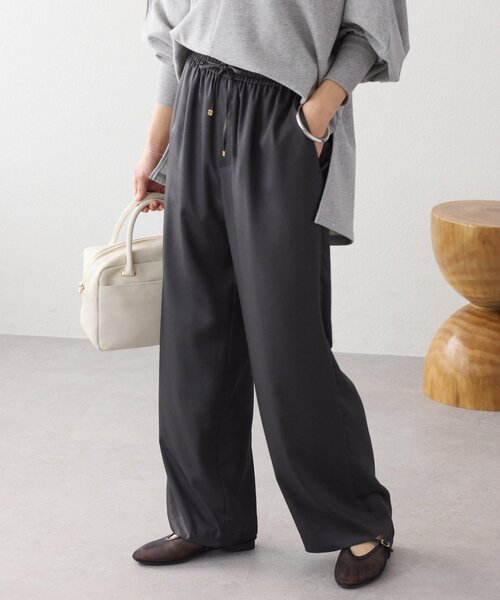 しなやかな落ち感と上品な艶感が美しいパンツ ●デザイン ・光沢と落ち感が上品なサテン素材のイージーパンツ。 ・すっきりとしたストレートシルエットで、トップスのデザインを選ばず着回ししやすいデザイン。 ・ウエストもゴム仕様なので、ストレスフリーな着心地。 ・春らしい華やかなピンクと、定番で使えるベージュ、チャコールグレーの3色展開。 ●素材 ポリエステル 100% 洗濯方法:手洗い可 透け感:なし 裏地:なし 伸縮性:ウエスト部分あり 生地の厚さ:- 光沢:あり ファスナー:なし ポケット:あり -------------------------------------------------------------------------------- 【お買い物をもっと便利に楽しく♪】 『♡』をクリックでお気に入り登録 ✓「商品のお気に入り登録」で・・・ ラスト1点や再入荷の通知が届きます。登録して頂いた商品だけが対象となる、あなただけのタイムセールが開催されることも! ✓「ブランドのお気に入り登録」で・・・ 新商品や再入荷など、いち早くブランドのお得な情報を 受け取ることができますので、ご登録をおすすめします! -------------------------------------------------------------------------------- 【注意点】 ※画像の商品は光の照射や角度、お使いのモニター環境により、 実物と色味が異なる場合がございます。 ※入荷状況により、お届け予定が前後する場合があります。 ※お客様への発送が店頭販売より遅れる場合もあります。 ※追加生産商品は、一部の店舗、通販で販売中の場合がございます。 予めご了承下さい。 ----------------------------------------------------------------------
