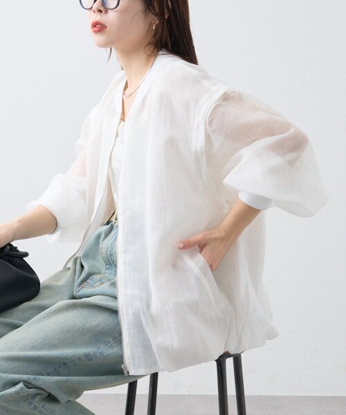 ベストにもなる2WAY×透け感×バルーン! 秋まで着回せる万能お洒落アウター◎ ■デザイン カジュアルなイメージのMA-1を、ぐっと女性らしくトレンドの雰囲気にアップデート。 シアーな生地感に、袖がファスナーで取り外しできる2WAY仕様。 ライトな着心地とそのディテールは、春夏秋とロングシーズン着回していただけます。 さっと脱ぎ着できるファスナーと、サイドポケット付きで実用性も◎ さらに、引き裂き・破れに強い機能性を持たせた生地でタフに着ていただけます。 ふんわり丸みを持たせた裾がバルーンシルエットを作りぱっとトレンドコーデに。 リブでキュッと締めた袖口が女性らしいメリハリを演出し、着太りを軽減してくれます! ■スタイリング ロゴTやシャツの上から羽織るだけで、レイヤードスタイルの完成! 袖を外してベストとして着れば、いつものコーディネートがぐっと新鮮な印象に。 ワンピースやスラックスなど大人カジュアルにも馴染む、丁度いいバランスです。 コンパクトな着丈なので、前を閉じてトップス風に着こなすのもおすすめです。 ■お手入れ方法 洗濯:液温は30 ℃を限度とし、洗濯機で非常に弱い洗濯ができる アイロン:底面温度120 ℃を限度としてアイロン仕上げができる タンブル乾燥:不可 ・・・・・・・・・・・・・・・・・・・・・・ 透け感:あり 裏地:なし 伸縮性:なし 光沢感:なし 生地の厚さ:薄手 ・・・・・・・・・・・・・・・・・・・・・・ ▼気になる商品をお気に入り登録 ハートをクリックして《お気に入り登録》がオススメです! 入荷情報や、クーポン情報が通知されるようになります。 ※画像の商品はサンプルを使用しております。実際の商品と若干の仕様が変更になる場合がございますので、予めご了承の上ご注文くださいますようお願いいたします ※屋外の光や照明の当たり具合で、実際の商品の色味とカラー別画像の色味に若干の違いが発生する場合がございます。詳細画像と併せてご確認の上、ご注文いただきますようお願い致します。 ※独自のタイムセールなどの施策により、実店舗と価格差が発生する場合がございます。 ※実際の店舗在庫につきましては、各店舗に直接お問い合わせください。