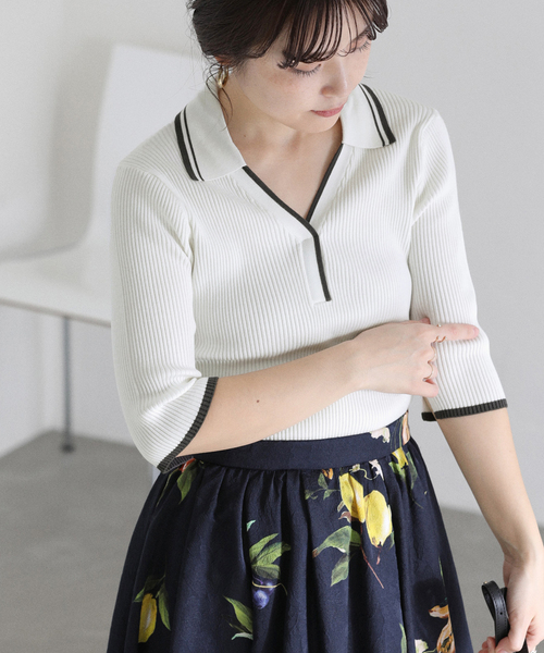 【2026SS】 LaTotalite 襟元や袖口の配色が目を引く、上品見えのバイカラーニット。 細リブ編みで身体のラインを拾いすぎず、すっきりと女性らしいシルエットに仕上げました。 ポロデザインのきちんと感と、配色トリムの遊び心が絶妙なバランスで、1枚で着映えるアイテムです。 五分袖なので気になる二の腕をさりげなくカバーしつつ、長いシーズン着用可能。 ご自宅で洗えるイージーケア仕様も嬉しいポイントです。 ********************** 透け感:なし 裏地:なし 伸縮性:あり 光沢感:なし 生地の厚さ:普通 ********************** 【スタッフ着用コメント】 《スタッフ名:mizuki》 身長:160cm/体型:普通/普段サイズ:S~M/着用サイズ:フリー サイズ感:ボデイラインを拾いすぎないコンパクトなサイズ感。 素材感:柔らかく滑らかな肌触りのニット素材。伸縮性も抜群。 着心地:伸縮性があり柔らかいので楽な着心地。 ********************** ※取り扱いについては、商品についている品質表示でご確認ください。 ※照明の関係により、実際よりも色味が違って見える場合があります。 またパソコン・スマートフォンなどの環境により、若干製品と画像のカラーが異なる場合もございます。 ※商品の色味は、商品アップ画像をご参照ください。 着用モデル身長: 160cm 着用サイズ:フリー 本体:手洗い可能