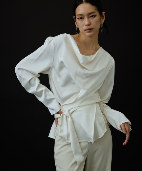 【DRWCYS S/S collection】〈 Design Point 〉やわらかなドレープが女性らしい印象を生み出す、上品なサテンブラウス。サイドとフロントにあいたスリットと、ウエストマークデザインが立体感を出し、一枚着るだけで洗練されたスタイルをかなえます。身体のラインを拾いすぎないシルエットでストレスフリーにご着用いただけます。キレイめなスラックスを合わせることでオケージョンシーンにも、デニム合わせでカジュアルダウンさせてデイリーにもオンオフお使いいただけるアイテムです。〈 Size 〉FREE サイズ〈 Detail 〉ポリエステル100%透け感:なし伸縮性:なし裏地:なしケア方法:ご自宅でお洗濯可能です。単独洗い、手洗いを推奨しております。※濃色品は多少色落ちする可能性がありますのでお洗濯のさいは、淡色のものとは別にお洗い下さい。※濃色品は漂白剤入り、または漂白剤成分のある洗剤の使用はお控えください。※照明の関係により、実際よりも色味が違って見える場合がございます。※商品に付いている商品表示とアテンションタグをご確認の上、着用・お取り扱い下さい。〈 公式Instagram 〉@drwcys_official新作アイテムの情報やおすすめ商品を随時UPしております。是非チェックしてみて下さい。----------------------------------------------------〈 お買い物をよりお楽しみいただく為に 〉・商品のお気に入り登録♡をクリックして気になるアイテムをお気に入りに登録していただくと完売カラーの再入荷や、ラスト1点の通知、セールの際の通知を受ける事ができます。ブランドのお気に入り登録もご一緒にお願い致します。