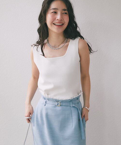 大好評につき復刻!新色オフホワイト・ブラック追加! 全骨格オススメ!旬のコーデに欠かせないニットタンクトップ ●デザイン ドライ感がありながらも、肌なじみの良い滑らかさも併せ持つニットタンク。 春・秋・冬はインナーとして、夏はさらりと1枚でと、オールシーズンに活躍してくれるのが魅力。 デコルテを美しく見せるスクエアネックを採用。 ベーシックなホワイトに加え今期はバイカラーデザインのオフホワイト・ブラックが登場。 カラー展開豊富で幅広くお楽しみいただけます。 羽織のインナーとしはもちろん1枚でも着用していただけます。 ●ポイント ・ドライタッチの肌なじみの良い滑らかな素材 ・デコルテをきれいに見せるスクエアネック ・オールシーズン着用可能 ・新色オフホワイト・ブラック登場 ●おすすめのコーディネート 透け感のあるシャツやメッシュニット、カットソーなどのインナーにおすすめ。 1枚で着用いただいても、様になるアイテムです。 ●おすすめのシーン / 着こなし 休日スタイル 韓国ファッション オフィスカジュアル 空港コーデ 春コーデ ライブ参戦服 カジュアルコーデ 洗濯方法:手洗い可 光沢:なし 裏地:なし 生地の厚さ:ふつう 伸縮性:あり #cate001