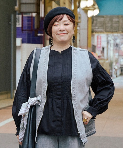 studio CLIPの人気スタッフ『さかもってぃ』企画!ピンタックがポイントの一枚で着映えするブラウスーーー【素材】ブラックとサクラピンクは落ち感のある綿レーヨンを使用。インディゴは綿リヨセルのデニム素材を使用しています。それぞれの生地に合わせて製品染め加工を施しました。【デザイン】前面のピンタックがポイントのブラウス。袖や背面にシャーリングのアクセントを入れた一枚で着映えするデザインです。襟ぐりにはワンポイントのメタル釦を付け、よりヴィンテージ感を演出しています。ーーー【スタイリング】シンプルなワンツーコーデもこなれた印象に。一枚ではもちろん、ベストやビスチェをレイヤードしても素敵です。さかもってぃコメント▼一枚で着映えするブラウスです!柔らかく落ち感のある生地を使用しており、ピンタックとギャザーが素敵ポイント◎袖のボリュームは膨らみすぎないよう調整しました。首元のボタンはアクセサリーの代わりになるように、シルバーとゴールドにしたところもポイントです。