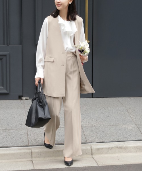 【商品説明】 オケージョンにも使える大人のセットアップパンツスーツです。 カラーレスのベストは程よい抜け感で、パンツはすっきりとしたシルエットに仕上げました。 セットアップとしての着用はもちろん単品でもお楽しみいただけます。 【スペック】 裏地:トップス:ありパンツ:あり(ベージュのみ) 透け感:淡色あり 伸縮性:ややあり ポケット:あり 重さ:(M/L)ベスト:約456g / 約473gパンツ(レギュラー丈):約446g / 約461gパンツ(トール丈):約468g / 約470g ※ご覧のモニター環境により、商品画像と実物の色味が多少異なって見える場合がございます。 ★『お気に入り登録』で最新情報をGET★ ▼商品のお気に入り登録 セール・再入荷・在庫ラスト1点などの通知を受け取ることができます! ▼ブランドのお気に入り登録 新商品や再入荷などお得な情報を受け取ることができます! ◆ HUG.U / ハグユー ◆ 体型やライフスタイルに縛られず 「そのままの貴方」が輝く洋服。 Instagram:@hug.u__official 着用感など随時更新しております。 是非チェックしてみてください。 ※他のキャンペーンにより、期間中に価格が変動する場合があります。 ※セールは予告なく終了させていただく場合もあります。