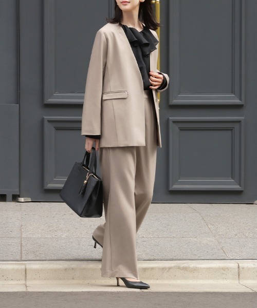 【商品説明】 オケージョンにも使える大人のセットアップパンツスーツです。 カラーレスジャケットは程よい抜け感で、パンツはすっきりとしたシルエットに仕上げました。 セットアップとしての着用はもちろん単品でもお楽しみいただけます。 【スペック】 裏地:あり 透け感:なし 伸縮性:ややあり ポケット:あり 重さ:(M/L)ジャケット:約499g / 約509gパンツ(レギュラー丈):約454g / 約468gパンツ(トール丈):約477g / 約492g ※ご覧のモニター環境により、商品画像と実物の色味が多少異なって見える場合がございます。 ★『お気に入り登録』で最新情報をGET★ ▼商品のお気に入り登録 セール・再入荷・在庫ラスト1点などの通知を受け取ることができます! ▼ブランドのお気に入り登録 新商品や再入荷などお得な情報を受け取ることができます! ◆ HUG.U / ハグユー ◆ 体型やライフスタイルに縛られず 「そのままの貴方」が輝く洋服。 Instagram:@hug.u__official 着用感など随時更新しております。 是非チェックしてみてください。 ※他のキャンペーンにより、期間中に価格が変動する場合があります。 ※セールは予告なく終了させていただく場合もあります。