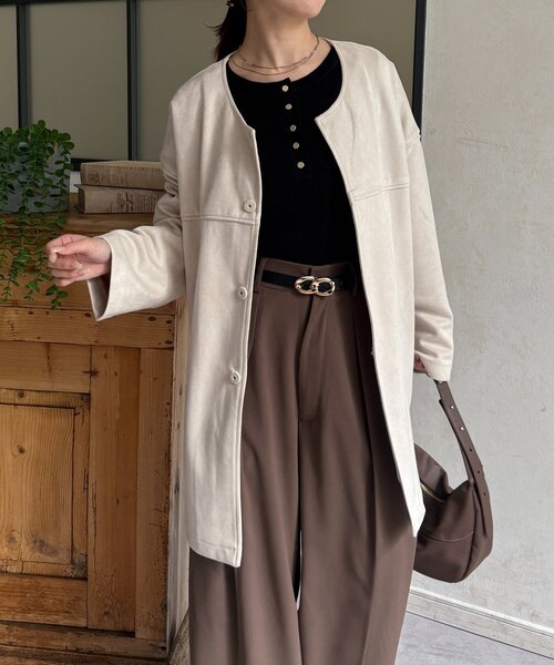 【2026SS】洗練されたシルエットが上品なノーカラーコート【POINT】・首元がすっきり見えるノーカラーで上品な抜け感を演出・どんなボトムスとも相性抜群なミドル丈・さらっと羽織れて、ロングシーズン活躍・高見えするデザインで普段使いからオフィスまで【STYLING】・きれいめブラウスに細身のパンツを合わせて、オフィススタイルに。 足元はパンプスで上品にまとめると◎・ロゴTシャツにデニムを合わせて、ラフな大人カジュアル。 スニーカーやブーツで、こなれ感のある印象に。【アフターケア】・手洗い可・漂白不可・タンブル乾燥処理不可・日陰でのつり干し乾燥がよい・アイロン可(中温)・ドライクリーニング不可----------------------------------------------透け感:なし裏地:なし伸縮性:なし光沢感:なし----------------------------------------------※商品画像は着用イメージです。 光や角度により、実物と色味が異なる場合がございます。 また表示のサイズ感も実物とは若干異なる場合もございますので、 ご了承ください。※着用、お取り扱いの際は、商品についている品質表示と アテンションタグを必ずご確認ください。----------------------------------------------【Thevon】 自分を魅せる「ニュアンスファッション」オトメからオトナに向かう女性へ旬なアイテムを提案----------------------------------------------気になるアイテムは【お気に入り登録】がおすすめ!▽商品のお気に入り登録完売カラーの再入荷やラスト1点の通知などを受け取ることができます。▽PALCLOSETでブランドをお気に入り登録新商品やクーポン、セール情報をいち早く受け取ることができます。